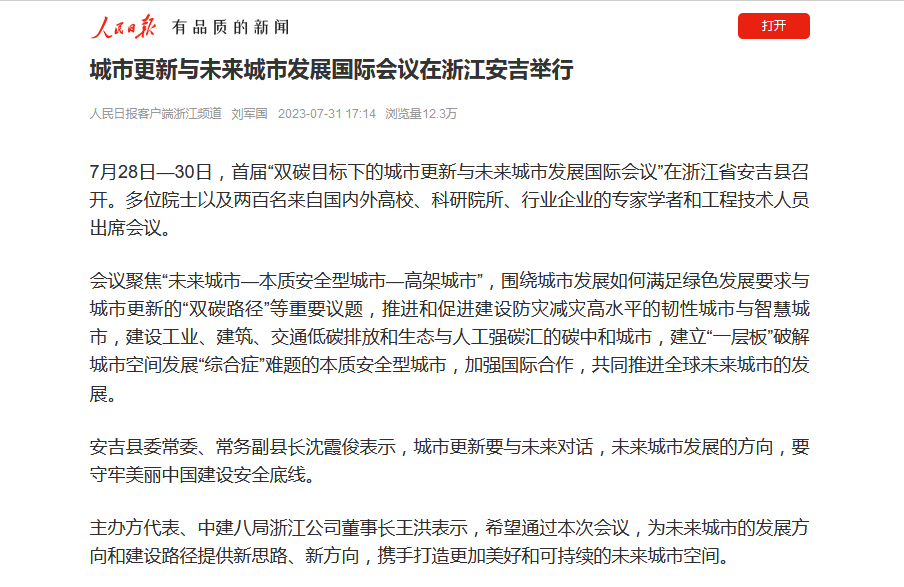 人民日报客户端:城市更新与未来城市发展国际会议在浙江安吉举行