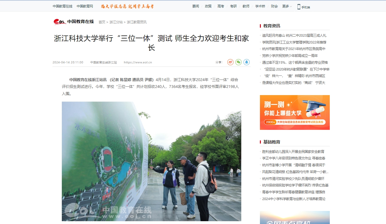 杭州网:当学生在参加“三位一体”测试时 家长干了些什么事