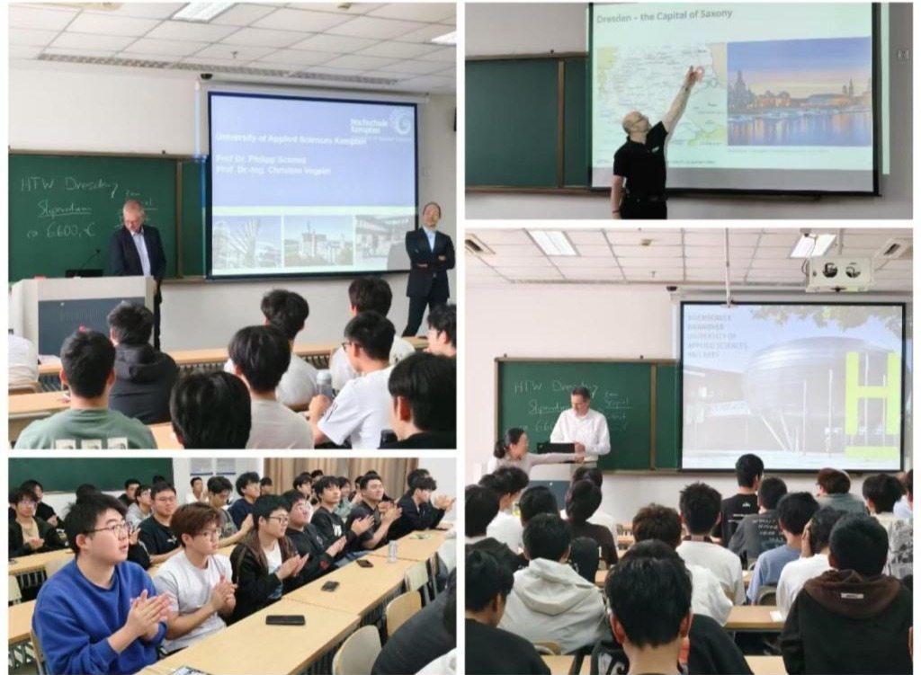日前, 中德联合培养“2+3”项目德方合作院校教授来校,和“2+3”项目大一各专业学生开展交流。